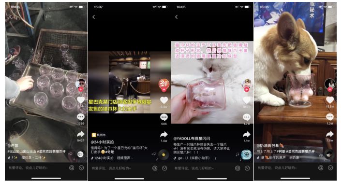关联创意,俗称“蹭热点”。星巴克猫爪杯突然在网络走红,有客户为了购买限量供应的猫爪杯大打出手,全网轰动。很多抖音账号于是借助猫爪杯的热点,进行关联创意,视频爆火。