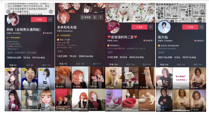 比如“多余和毛毛姐”,一个男生同时扮演男女两个不同的角色,自己与自己进行对话和沟通,没想到女版比男版更受粉丝欢迎。抖音账号“乔万旭”,主播也是一个人扮演多个角色,很受欢迎。抖音里很多男生化妆变美女的视频,都很受欢迎,比如“阿纯”。动物与人的角色互换,代表是“会说话的刘二豆”“金毛蛋黄”等。语言模仿,参考“张大仙”。