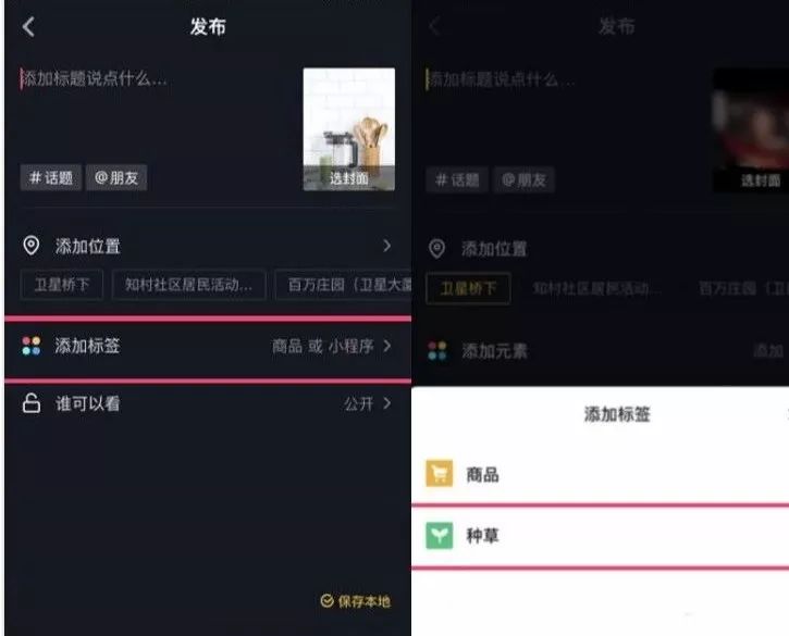 需要注意的是,添加种草标签后将无法再为视频添加购物车,所以标签页功能的目的是吸引更多流量和粉丝。